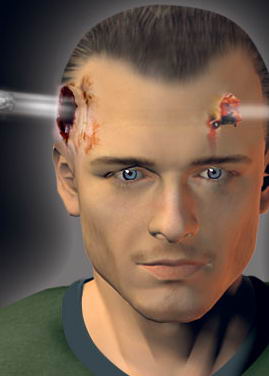 电脑演示子弹如何穿过这名士兵的头部