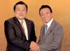 资料图:麻生太郎(右)和赤羽一嘉合影