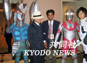 日本外相麻生太郎身披雨衣,戴着帽子,摆出美国好莱坞明星亨弗莱·鲍嘉抽烟的姿势。他的部下有的穿青蛙外套在台上蹦来蹦去,有的穿着鱼或龙虾的外套,现场气氛一下变得极为荒诞。
