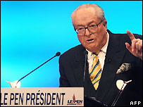 现年79岁的勒庞数次参与法国总统大选,打出的竞选口号是:把法国留给法国人。在2007年的大选中,勒庞赢得了10%的选票,震惊了全欧洲。