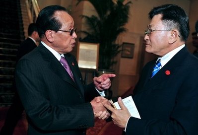 柬外长贺南洪(左)和泰国外长颂蓬在北京亚欧峰会场