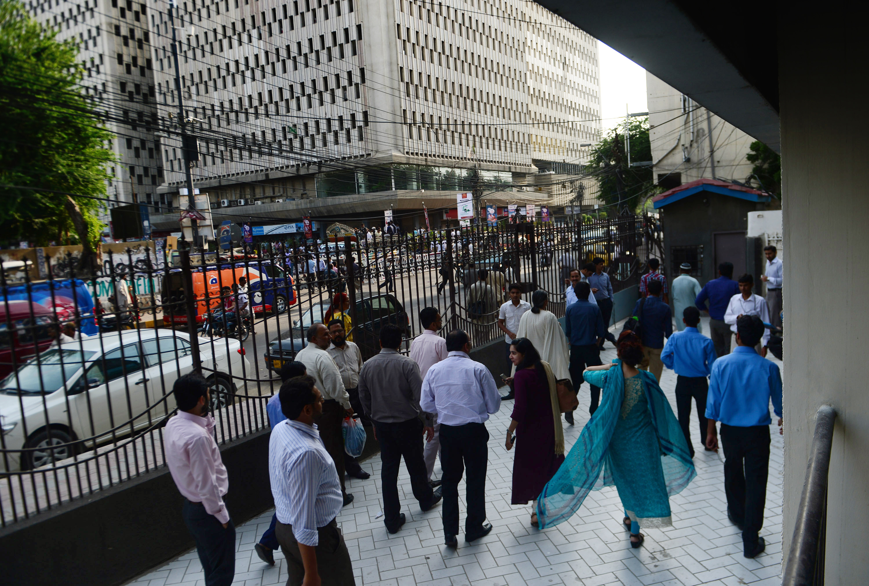 巴基斯坦发生7.8级地震 写字楼内人员进行撤离