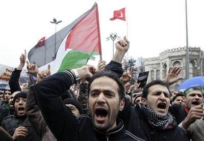 在叙利亚、伊拉克、埃及以及土耳其等国也有类似示威,他们焚烧以色列和美国旗帜,高举反以横额。伊朗议会28日中断会议,议员高呼反美反以色列的口号上街游行。