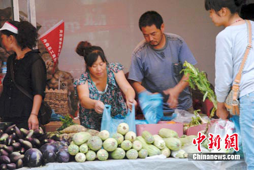 中新网舟曲8月20日电 (记者 侯志红) “从14日下午开始我们我们已经有蔬菜上市了,但目前因道路受到限制,疏菜运输还比较困难,因此, 疏菜成了舟曲居民的抢手货。”舟曲县政府附近一位菜滩的女老告诉记者。