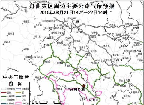 舟曲周边主要公路仍有降雨,路滑注意安全。具体预报如下: