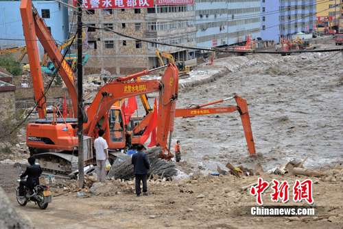 中新网8月24日电 (马燕清 侯志红) 8月8日甘肃省舟曲县的特大山洪泥石流造成穿城而过的白龙江河床抬高,水位提升,淹没了大半个县城。如今汹涌的白龙江又有了新变化。