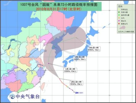 预计,“圆规” 将以每小时30公里左右的速度向西北方向移动,强度还将略有加强,将于31日晚上进入东海东南部海面,以后逐渐向浙江北部到江苏南部一带沿海靠近,并有可能于9月1日白天擦过这一带沿海北上。