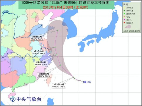 受“玛瑙”和西南季风的共同影响,9月4日中午到5日中午,巴士海峡、巴林塘海峡、台湾以东洋面、东海大部将有6-8级大风,“玛瑙”中心经过的附近海域风力可达9-10级,阵风11-12级。
