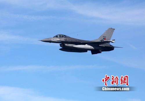中国国家主席胡锦涛11月6日乘专机抵达里斯本。这是胡锦涛就任国家主席以来首次对葡萄牙进行国事访问,也是中国国家元首时隔11年再次对葡萄牙进行国事访问。专机驶入葡萄牙领空后,葡方派两架战斗机护航。图为在胡锦涛所乘专机右翼护航的葡萄牙战机。