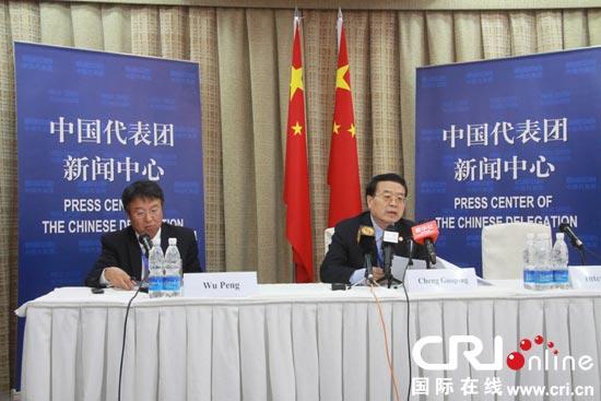 中国外交部副部长程国平(右)召开新闻发布会
