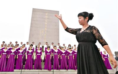 为纪念全民族抗战爆发77周年,昨天下午六点,由北京市委宣传部主办,丰台区委、丰台区政府承办的“勿忘国耻,圆梦中华”首都各界群众歌咏活动在中国人民抗日战争纪念雕塑园中心广场内举行。 新京报记者 李禹潼 薛珺 摄影报道