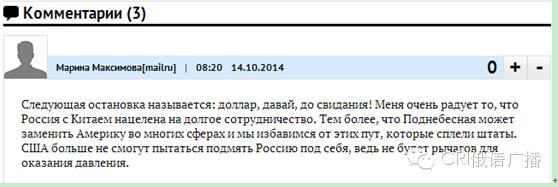 网友马克西莫娃评论说:“下一步就该和美元说再见了!我非常高兴地看到,俄罗斯与中国致力于长期合作。中国将在众多领域取代美国,我们将摆脱美国的羁绊。美利坚再也不可能把我们踩在脚下了,因为向我们施压的工具已经失效。”