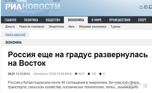 普京下令组建的“今日俄罗斯”国际新闻通讯社:对李总理访问俄罗斯的成果进行了全面梳理与介绍,其中说道,“中俄签署了将近40项合作协议,涉及能源、金融、交通、航空航天等多个领域,这显示出,中俄合作又向前跨一大步,俄罗斯向东再转一度”。