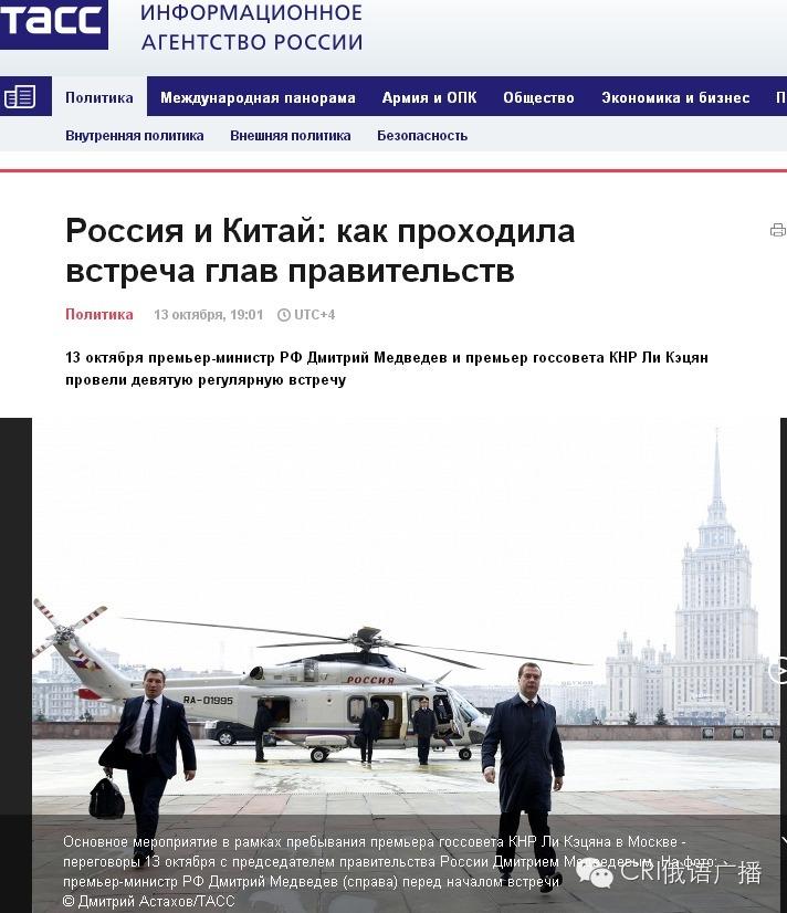 俄罗斯三大通讯社之一俄通社-塔斯社:用10张照片回顾和总结了李克强总理的莫斯科之行。