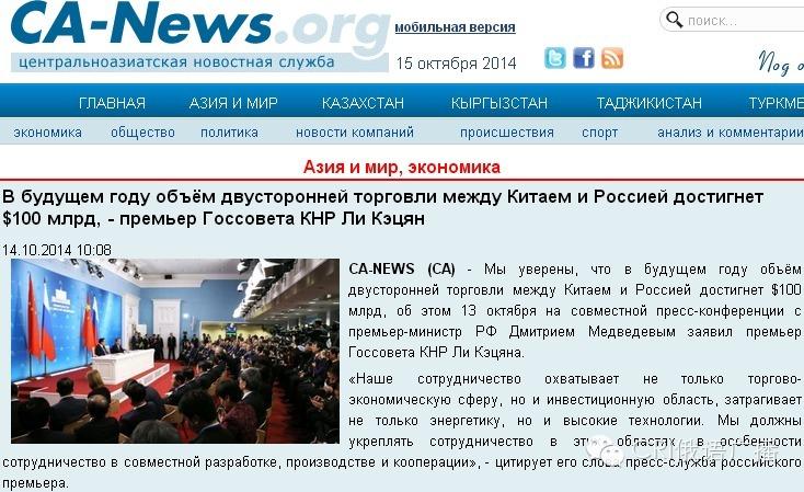中亚新闻社:中俄双边贸易额将达到1000亿美元,而中俄合作对中亚地区的发展具有决定性影响,因此,中亚媒体格外关注两大国的合作动向。