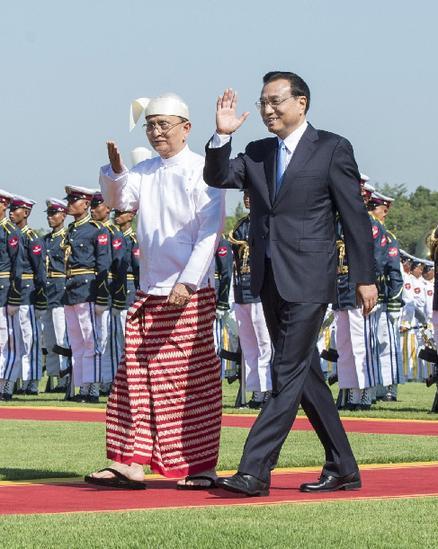 11月14日,缅甸总统吴登盛为李克强总理举行隆重欢迎仪式。