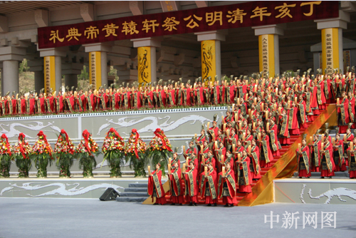 中新网4月5日电 丁亥年清明公祭轩辕黄帝大典今天在陕西黄陵桥山轩辕殿广场上举行。