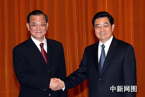 中共中央总书记胡锦涛会见中国国民党荣誉主席连战。盛佳鹏 摄
