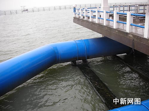 记者在无锡主要水源地贡湖地区看到,现场零点六公里范围内的太湖水域被新近安装的防护装置保护起来,已经没有一点污水团和蓝藻残存的迹象,外围则有一些船只在继续进行清淤作业,取水口的水底探测器也在二十四小时监测水质变化,并将数据及时输送到检测中心,贡湖基本上恢复了原有的清洁。