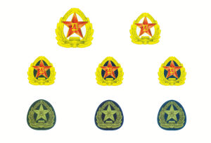胸标 分胸标和软胸标两类。图案分军委总部和陆军、海军、空军、第二炮兵5种。用料,胸标为锌合金,软胸标为涤纶电脑织绣片。
