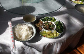 中午饭安排在明熙苑度假山庄,仇和书记与富民县相关领导等10余人,分在了“明月厅”就餐。这是一个约40平方的普通餐厅,摆了一张旋转圆桌,最多可供16人同时就餐。