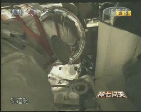 快讯:翟志刚顺利出舱 实施中国首次空间出舱活动