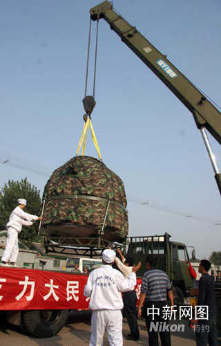 “神七”载人飞船返回舱运抵北京。中新社记者 孙自法 摄