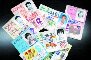 从2元的1995年版公交月票,到30元的2004年版公交月票,粮票、油票、工资条、彩票、选民证等,柯富海老人的100多件收藏品,在西花市大街南里居委会林林总总摆满了三面墙。这是一位花甲老人的“个人改革开放30周年展”。