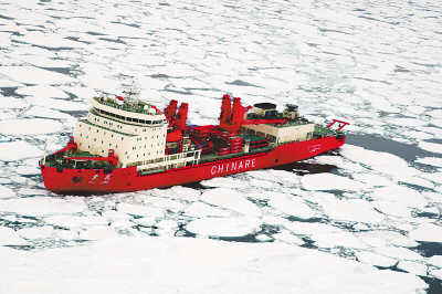 待到破陆缘冰时,雪龙船将会显露“啃冰”本色。陆缘冰到底有多硬?考察队里有见识过的人说,拿铁家伙去砸,也就能留下个指甲印。而雪龙船在破1米厚的陆缘冰时,航速可达1.5海里/小时。遇到特别厚的陆缘冰,雪龙船也难免会“啃”不动,有的时候一小时才能拱个100多米。这时候就会寻找陆缘冰的薄弱环节,迂回前行。(余建斌)