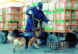 上午9时,4只“犬警官”坐镇北京西站,在旅客行李房等处忙着缉毒搜爆,还将在广场、站台、垃圾箱、行李房、下水道及各阴暗角落搜查可疑物品。