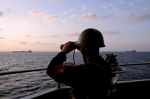 编队指挥组的何虎大校说:“实施分组护航和不间断护航,目的只有一个,就是减少商船等待时间。无论在曼德海峡东口,还是在亚丁湾东部海域,只要商船一到,我们就开始编队组织护航。”
