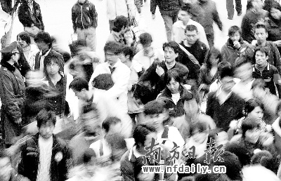 来自柳州的刘先生昨天搭乘K301次列车抵达广州,他带着老家的特产———烤鸭、鸡、花生,打算送给在清远鞋厂打工的工友和在广东的老乡。陕西宝鸡人包永江前年因为一次意外的车祸致残。昨天他拄着一双拐杖,在广州火车东站和谐号出站口等妻子。这是他第一次外出,因为妻子在自己打工的那家纺织厂里给他介绍了一份看门的工作,他从大年二十八就踏上了南下列车。为了省80元路费,他选择先从宝鸡转到汉口,再从汉口乘慢车抵达广州。因为妻子在黄金周长假期间加班,昨天下午才能从深圳赶过来接他。至昨天,他已经连续在车站等了6天。他希望新年里,自己能为妻子分担一些负担,两个人今年可以还清家里的欠帐。
