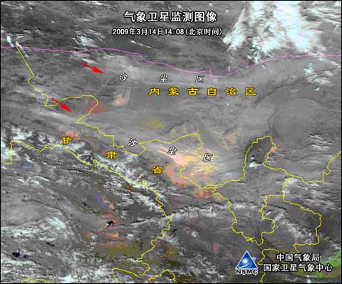 14日白天,内蒙古西部出现沙尘暴,甘肃民勤出现能见度仅300米的强沙尘暴。当天内蒙古、青海、甘肃、宁夏等地有6-7级风,局部地区达8级。今天当地的风力减弱了,但部分沙尘会顺着强劲的西北风向东推移。北京今天正处于西北气流控制,因而受到“牵连”。