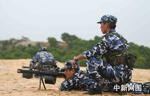 资料图:中国海军陆战队某部在南海之滨水际滩头进行各种实兵演练,通过小比武、小竞赛等形式,有效地提高了部队战斗力。作者:韩海冰