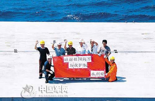 当地时间4月21日6时,海军第二批护航编队开始中国海军在亚丁湾、索马里海域的第44批护航。接受护航的船舶通过不同形式表达对伟大祖国和护航海军的感谢。本报记者夏洪平、通讯员骆源摄影报道
