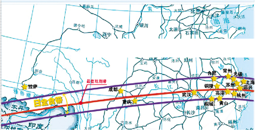 同时,这也是世界历史上覆盖人口最多的一次日全食。据中国国家天文台预报称,中国可观测到这次日全食的地区包括西藏东南部、云南西北部、四川、重庆、湖北、湖南北部、安徽、江西北部、江苏南部、浙江北部和上海。其中,武汉、铜陵、桐城、湖州、常州、无锡、苏州、杭州、嘉兴、绍兴、上海、宁波、舟山13个城市位于日食带内,适宜进行日全食观测。全国其他区域也均能看到日偏食。据太阳移动轨迹,长江沿线一带的居民都能大饱眼福。所以,世界天文学界甚至称此次日食为“中国日全食”。
