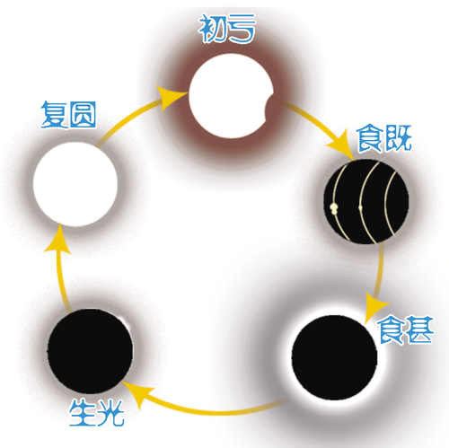 据记者从广东天文学会了解到,7月22日武汉日全食的初亏是8时14分53秒,食既9时23分56秒,食甚9时26分39秒,食分为1.076。太阳高度角为48度,太阳方位角为93度(即正东方向偏南3度)。另外,生光将会在9时29分24秒,复圆10时46分15秒,全食时间共5分28秒。