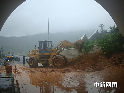 8月9日中午12点30分许,位于福建方向三都岭隧道北洞口上方,由于山上大量雨水聚集形成的小型山洪的冲刷,导致将近30平方的泥石流顺着山洪冲到了高速公路上,造成慢车道和部分快车道上泥石成堆,通行严重受阻,高速交警立即在福建方向的躺下出口实施封道分流,过往车辆绕行国道。(完)
