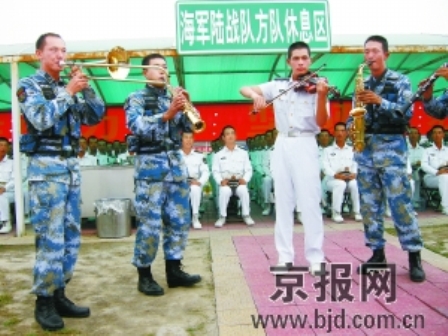 据新中国成立60周年国庆首都阅兵和群众游行联合军乐团团长兼总指挥于海介绍,联合军乐团由来自四总部、各军区军兵种和武警部队15个大单位、46支乐队的1500人组成,于今年3月正式成立,7月1日开始在京进行为期3个月的集中训练。军乐团将担负国庆首都阅兵和群众游行全部43首(次)音乐的演奏任务,届时,国旗班要按照军乐团演奏国歌每分钟96拍的节奏完成升旗,阅兵分列式和群众游行方队要按照军乐团演奏的每分钟116拍完成受阅。此外,此次国庆阅兵的一大创新就是,由北京各大院校学生组成的2500人的合唱队和200人的民族打击乐团,将与联合军乐团一起完成群众游行音乐的演奏演唱任务,在天安门广场上共同完成这场世界上规模最大的“广场音乐会”。