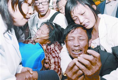 现场,有些失控。工作人员死死拉住陈崇香、涂月熙,并说:“节哀,节哀!”突然,伤心欲绝、痛哭中吐不过气来的涂月熙昏倒在地,正在追悼会大厅负责医疗的荆州市医护人员,赶紧过来给她输氧抢救。
