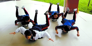 大眼睛、弯眉毛的叶晓莉是负责“开路先锋”表演的四名女军人之一。对于何以能将迎风面达35平方米的旗帜控制得得心应手,她向记者介绍说,自己和其他三名战友已经合作了十几年,伞降时无需说话,互相观察对方的身体,就能明白彼此要表达的信息。另外,四名跳伞员全部拥有7000次以上的跳伞经历,技艺娴熟,均能从千米高的空中操伞落在地上的一枚五分钱硬币之上。