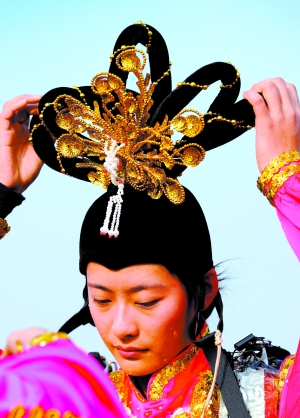 “最担心的是发冠歪了或者斜了。”“仙女下凡”组组长代寒月担心,如果发冠有倾斜就会影响观看效果,也影响“飞行”,她们将在演练中进行观察,如果不牢固,她要求这些姑娘们自己动手缝制卡子。