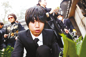 陈琳现任丈夫张超峰,无疑是现场媒体关注的焦点。虽然外界普遍猜测陈琳的死,与张超峰有着很大的关系,但在昨天的告别仪式上,所有人对张超峰还是非常的宽容。所有的亲友都走上前与张超峰握手,并送上安慰。张超峰则在现场一言不发,和陈琳的亲友也没有太多的交流。而张超峰亲笔写的挽联,也悬挂在陈琳棺木的前面。整个过程中,张超峰一直在控制自己的情绪,只是偶尔独自抹泪。