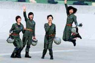 10月1日上午,尽管首都北京上空阳光明媚,但歼击机女飞行员驻训的华北某机场,云底高500米、云顶高1200米,能见度只有1.3公里。这种情形下能不能按时起飞,既是意志的考验,也是生死的考验。她们以忠诚无畏的战斗决心,迅速确定了长僚机组500米跟进起飞集合方案,梯队飞机56秒内一次全部升空。梯队飞到1200-1300米高度,一直在两个云层的夹缝中飞行,直到通州上空气象条件好转后才穿出云层。到达天安门广场上空时,面临气流较大、自重较轻的教练机严重颠簸的情况,姑娘们以良好的心理素质和过硬的飞行技术,保持了队形和精度,秒米不差地通过人民英雄纪念碑上空。