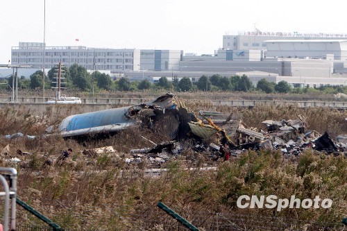 中央电视台连线记者报道称,飞机坠落引发的大火引燃了边上的一个东方航空公司所属的仓库,飞机机身断成两截,机尾断成了两到三截。这架飞机可能是在起飞时机尾碰擦到地面坠毁,目前确切原因还在进一步调查当中。