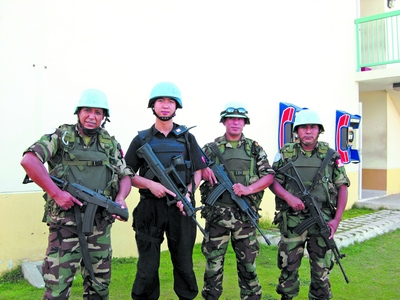 海地音乐狂欢节期间,中国防暴队还有一个重要任务——保卫蒙塔娜大酒店。杨明告诉记者,蒙塔娜大酒店是太子港最好的酒店之一,里面住有联合国高官和国外代表团人员,是非法武装袭击的重要目标。为了不对酒店营业造成影响,杨明和队友自带野战食品和防潮垫进行定点守卫。夜幕降临,杨明和队友只能在酒店前的空地上轮流休息,但是厚重的防弹衣让中国防暴队员压根睡不上一个踏实觉。杨明说,当时特别想躺在床上好好睡上一觉。不过这些辛苦都是非常值得的。在中国防暴队员的严密守卫下,狂欢节三天,蒙塔娜大酒店没有发生一起袭击事件,酒店的正常营业也没有遭受任何影响。住在酒店的各国高层对中国防暴队的工作给予了高度评价。