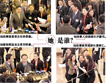 这名高调出镜的美女到底是谁?有人猜她是新闻发布会召集人,但从她手中标有“XHTV”的话筒来看,她很可能是新华社旗下新华网络电视的记者。
