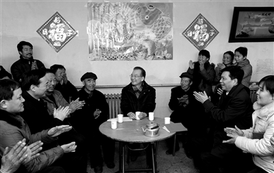 在苏洪喜的家中,温家宝向乡亲们介绍了政府的三农工作,恳请乡亲们对政府工作提意见。