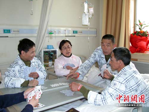 今天是王家岭获救矿工转诊太原的第八天,矿工们下床活动的时间在逐渐增多。