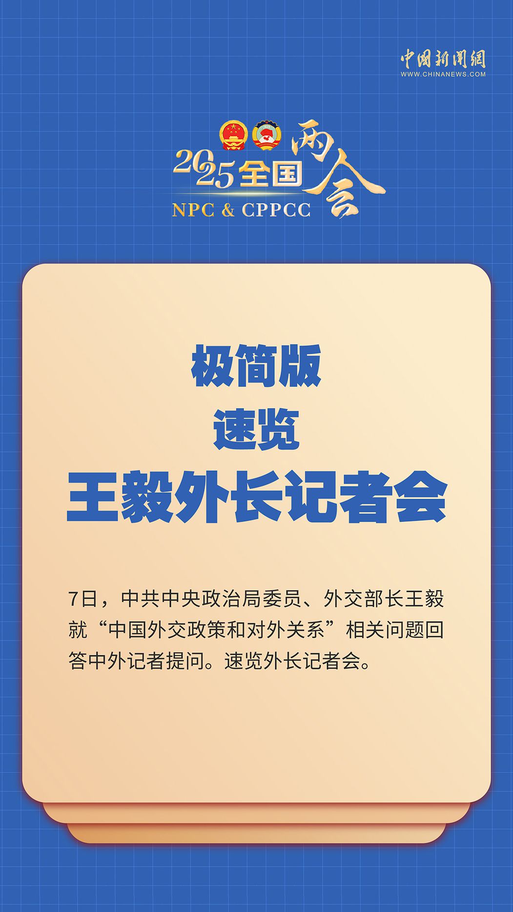 十四届全国人大三次会议将于3月7日(星期五)上午10时,在梅地亚中心新闻发布厅举行记者会,邀请中共中央政治局委员、外交部长王毅就“中国外交政策和对外关系”相关问题回答中外记者提问。